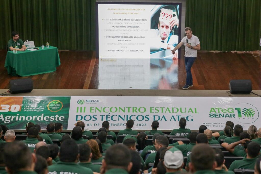 O Serviço Nacional de Aprendizagem Rural de Pernambuco (Senar-PE) promove, nos dias 06 e 07 de setembro, o V Encontro Estadual de Técnicos da Assistência Técnica e Gerencial (ATeG), durante a 32ª Agrinordeste, no Pernambuco Centro de Convenções, em Olinda.